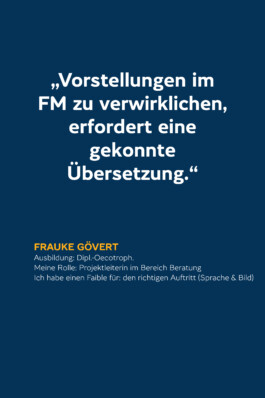 Du begleitest unsere Kunden bei den unterschiedlichsten Projekten rund um das Facility Management. Dank deiner breiten Expertise für den Betrieb von Gebäuden und der Organisation gebäudebezogener Prozesse findest du Lösungen für FM-relevante Themen. Weil Vergaberecht für dich kein Fremdwort ist, fällt es dir leicht unsere Kunden im öffentlichen Bereich als auch in der Privatwirtschaft sicher durch Vergabeprojekte zu führen. Du findest neue Wege für Kunden bei ihren FM-Prozessen oder der Steuerung ihrer Dienstleister. Und wenn es mal brenzlig wird, behältst du für unsere Kunden einen kühlen Kopf.